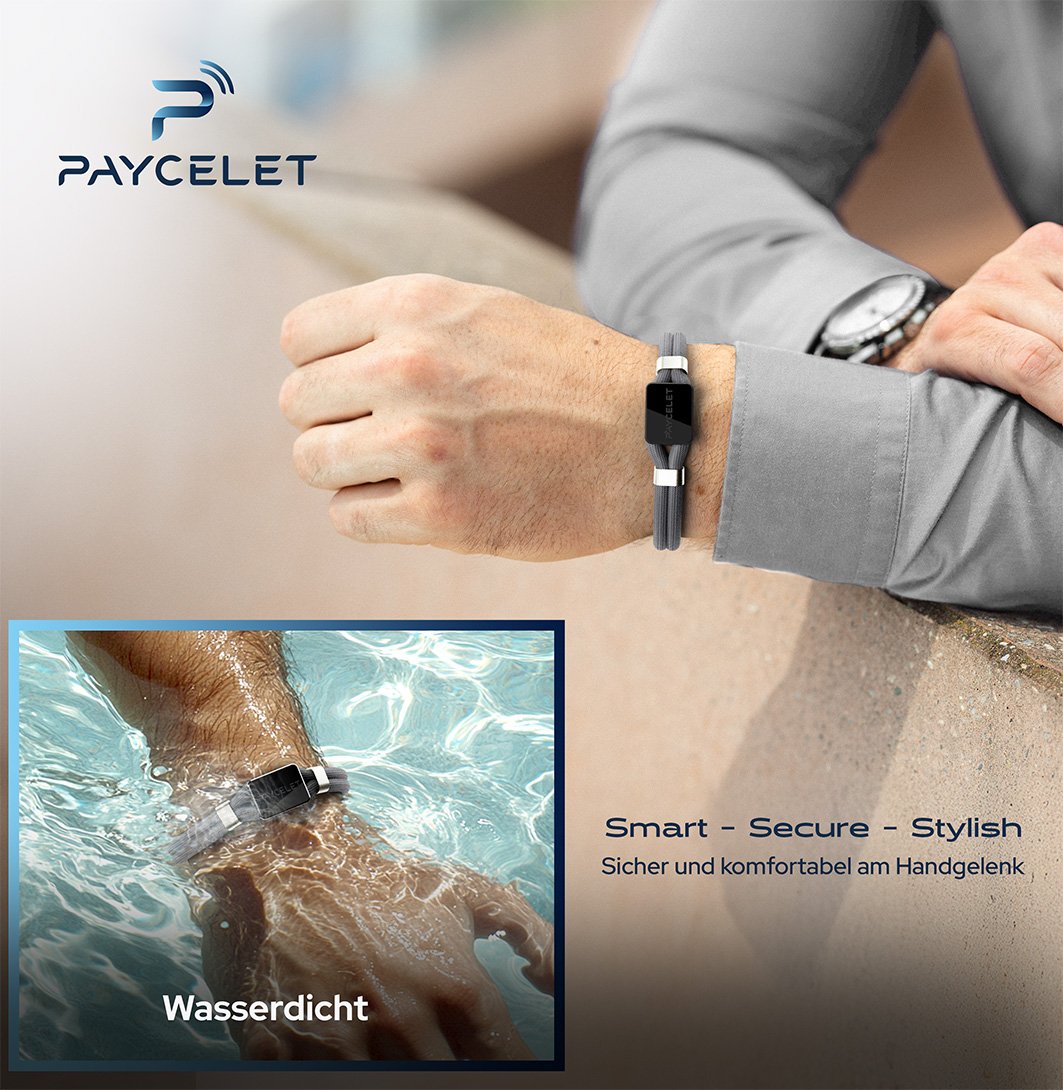 Build your own Bezahlarmband mit PAYCELET ONE. Bezahlen Sie sicher kontaktlos immer und überall, wo kontaktlos bezahlt werden kann.
